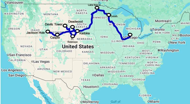 s Summer 2025 dawned, Mike and Bone had an itch to play Cowboys and Indians. No,,, not John Wayne and Client Eastwood, but real ones, like Wild Bill Hickok, (white hat), Jesse James (black hat), Indians like Red Cloud, Sitting Bull, and Crazy Horse! So Mike and Bone skedaddled out west to check out the real west, from International Falls Minnesota, through Sioux country in South Dakota; figuring out the why in Wyoming, digging a hole in Jackson; through the Grand Tetons into Utah, and back through Missouri to annoy Zerelda James and her Boy (Jesse)!