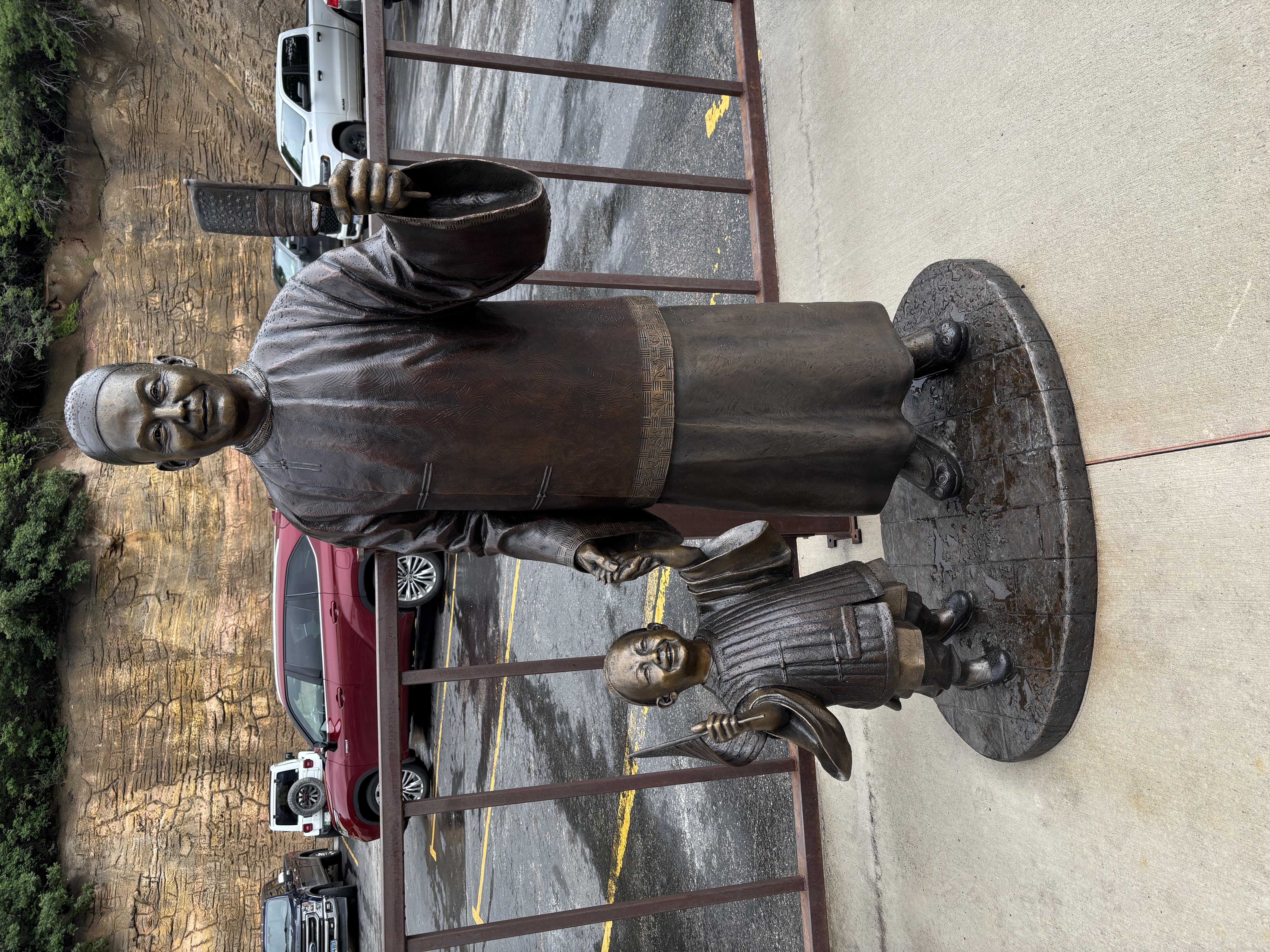 The Crazy Horse Memorial is a mountain monument complex under construction on privately held land in the Black Hills. It has Crazy Horse, riding a horse and pointing to the Lakota tribal land. The memorial was commissioned by Henry Standing Bear, a Lakota elder, to be sculpted by Korczak Ziolkowski. It is operated by the Crazy Horse Memorial Foundation, a nonprofit organization. As the Boys pulled in to the complex, the deluge began again, so they dashed into the Indian Museum of North America, which is home to a large collection of art and artifacts reflecting the diverse histories and cultures of over 300 Native Nations.