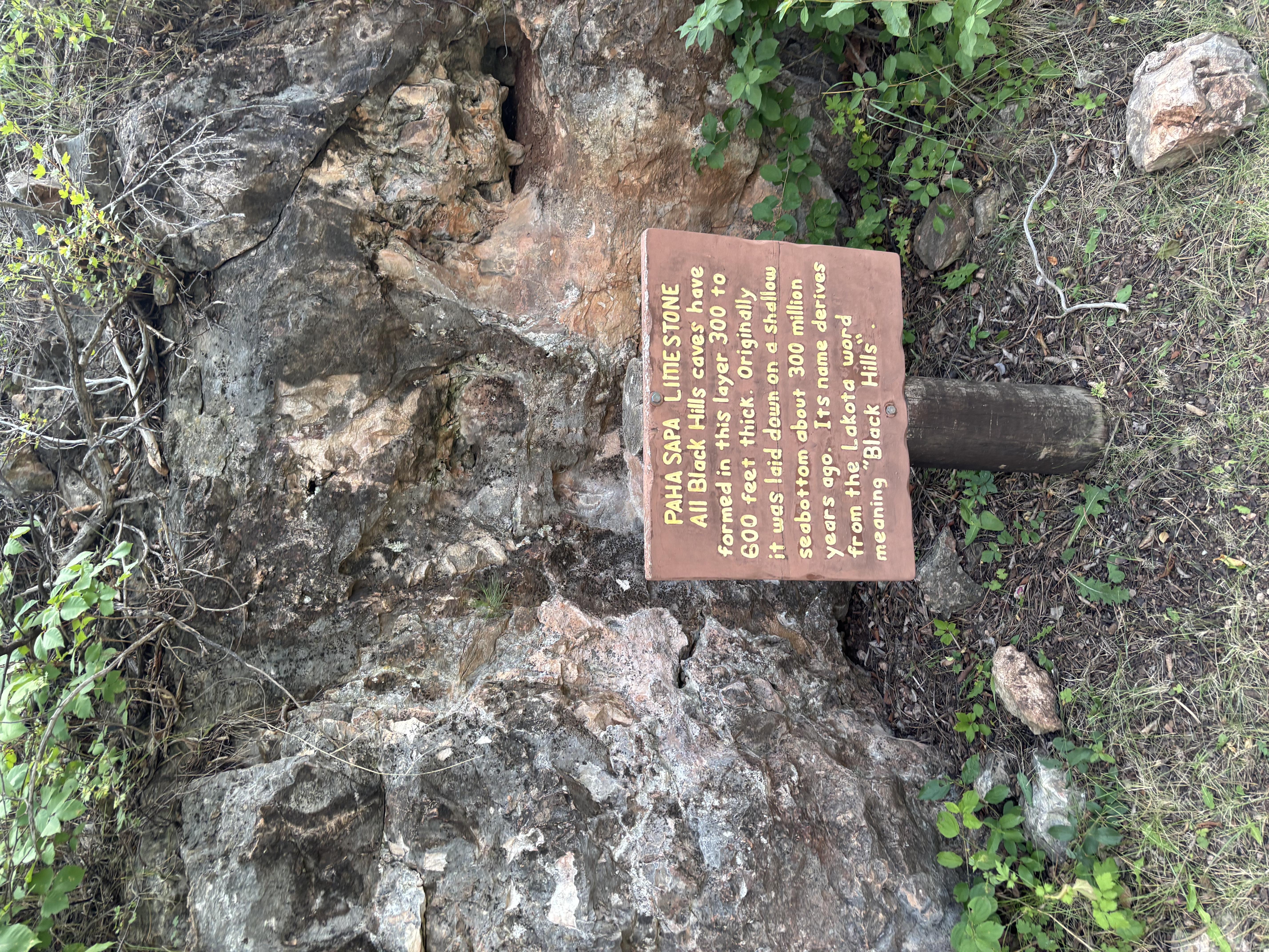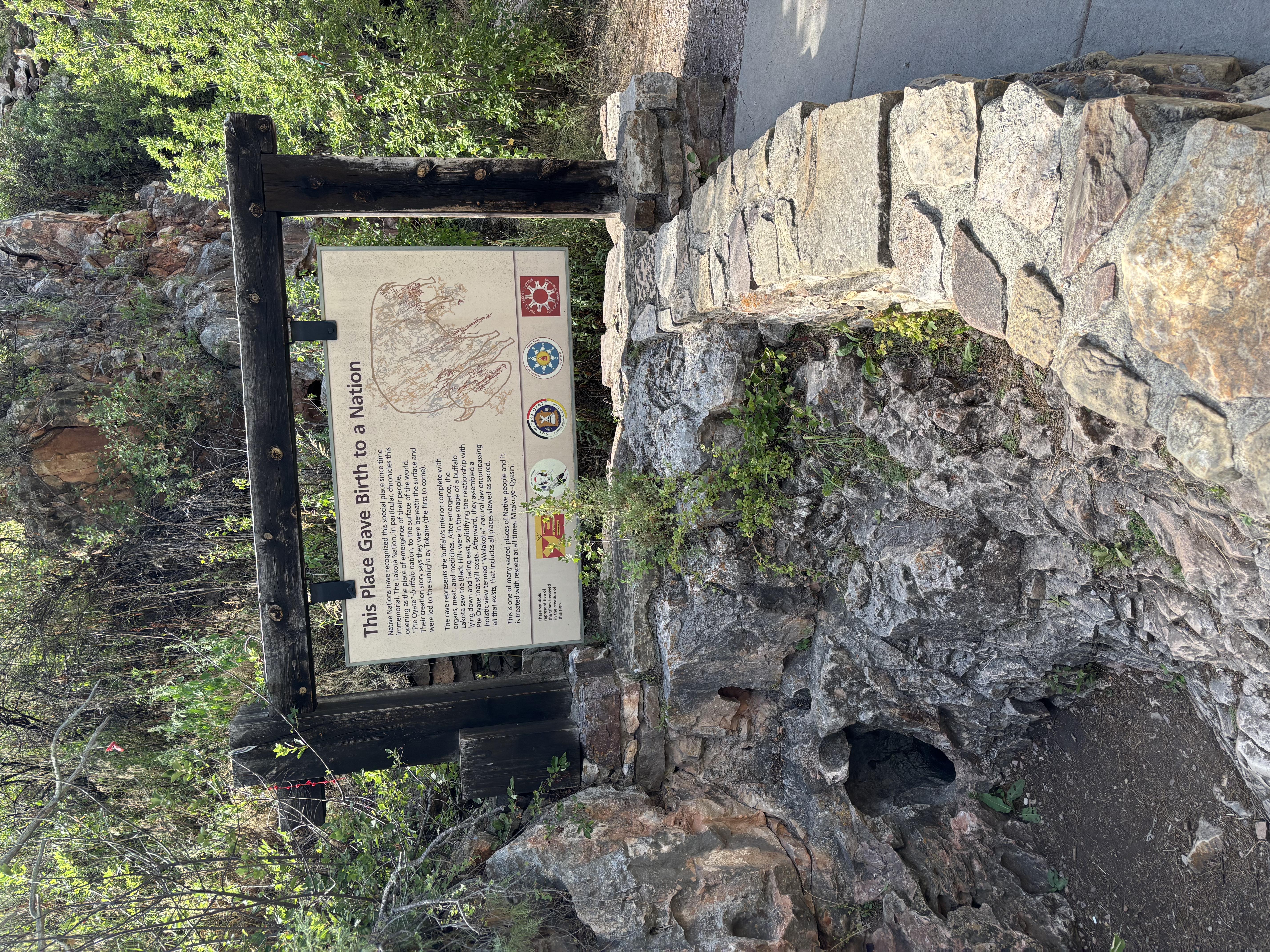 When they left the cave, the Creator shrunk the hole from the size of a man to the size it is now, too small for most people to enter, to serve as a reminder so the people would never forget from where they had come. The Boys pressed for time shot out of the Visitor Center and hit a path, in a rush, following people in front, they past some signs because they want to get to the Wind Cave and at least walk in the entrance!