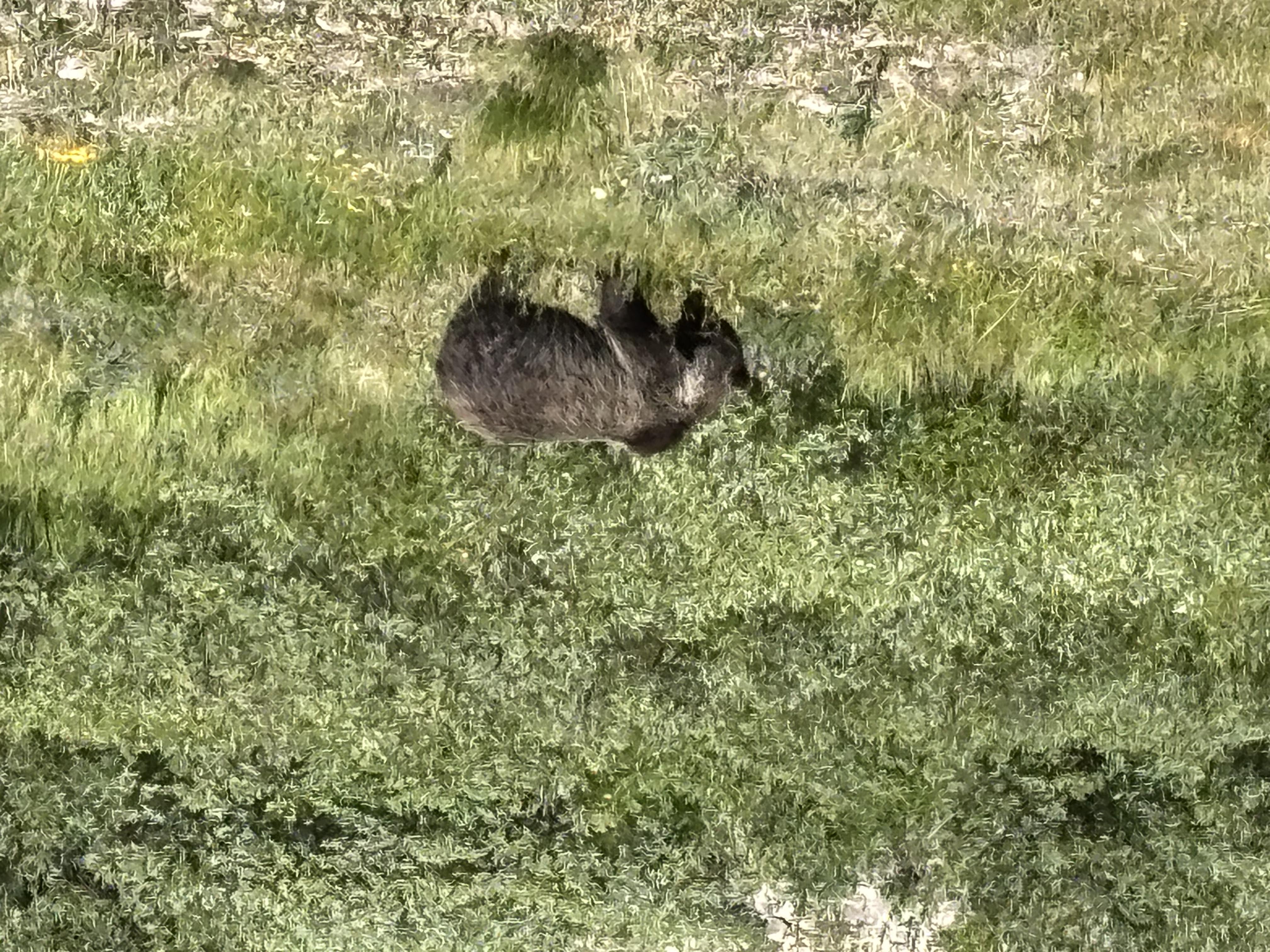 Slowly, the pine trees appears as the hills became higher, and soon the Boys were deep into the Rockies, and when they turned a corner the traffic slowed durn near to a stop! What was it?!? Could it be? Yep! it was bearly possible!! a Grizzly!