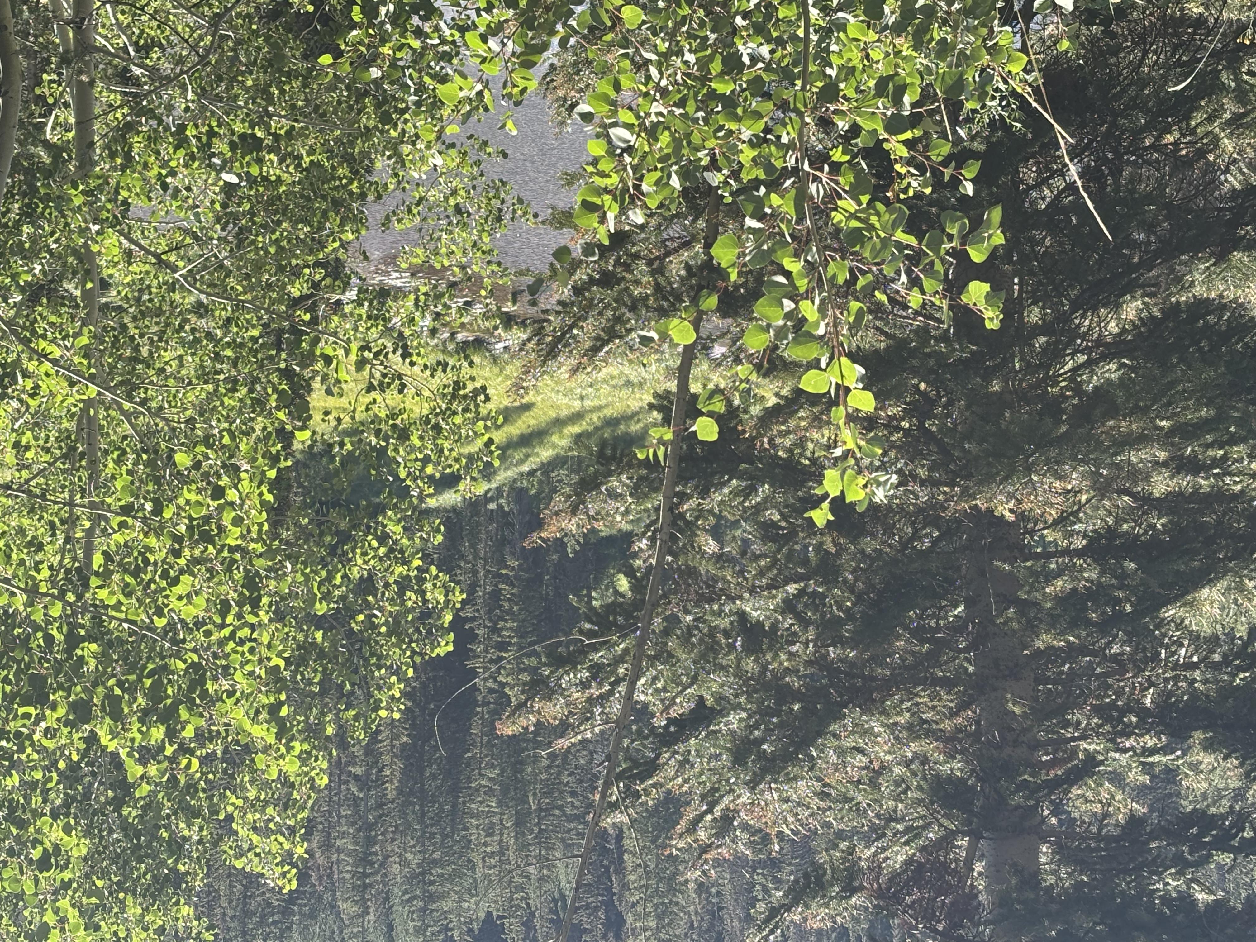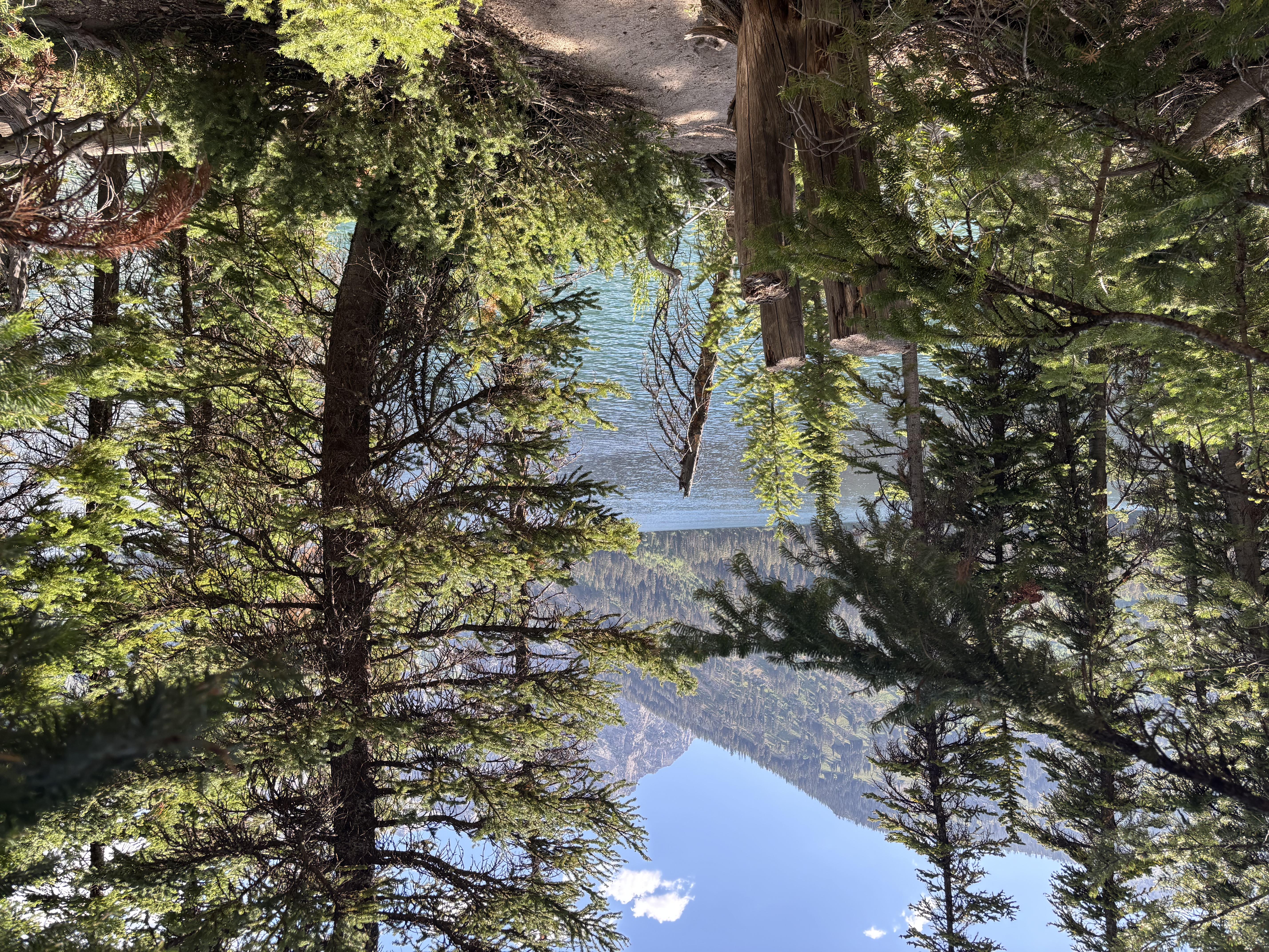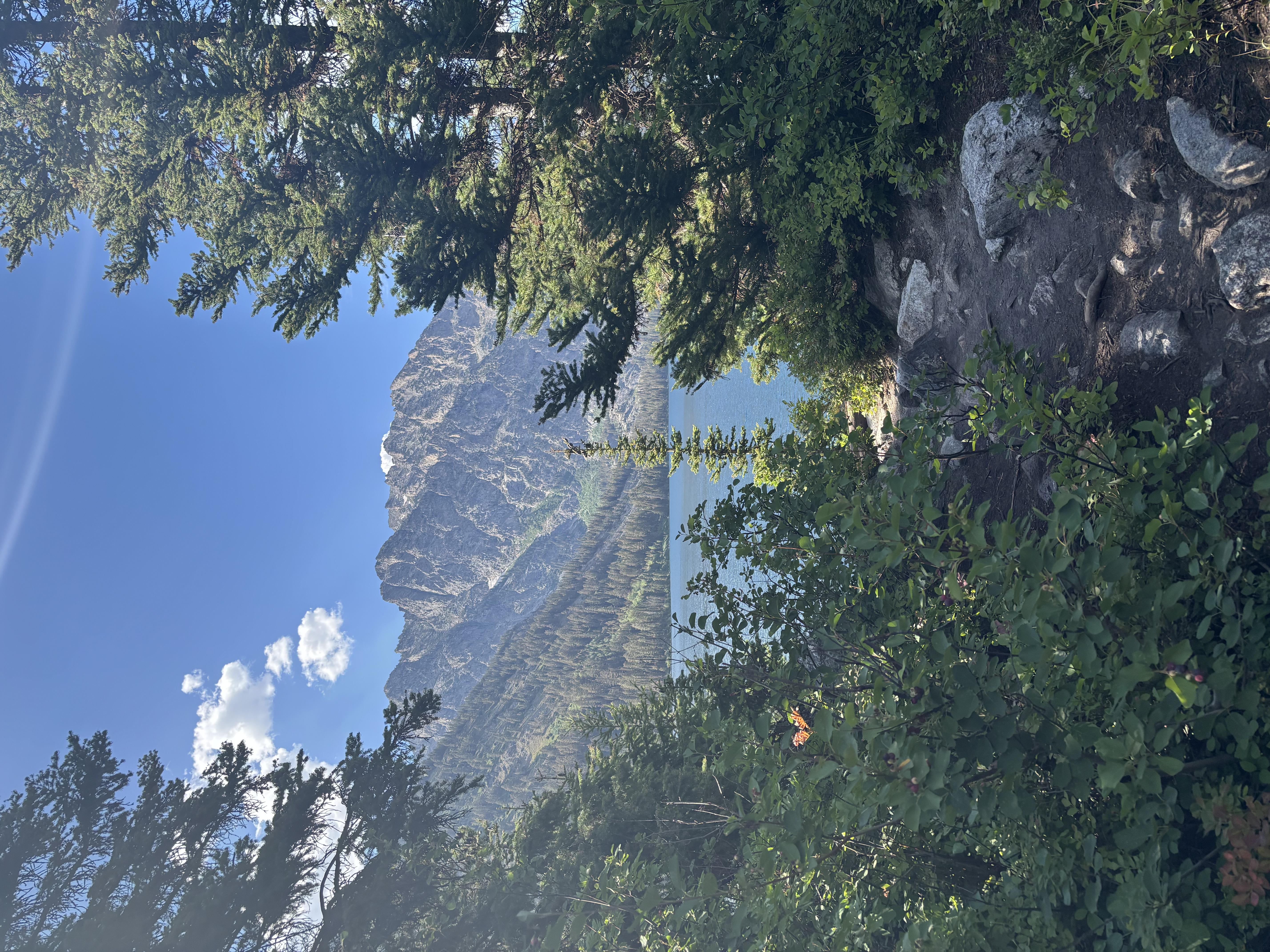 Despite it being a non-holiday week, and not the biggest attraction in the area (Yellowstone) the Park was packed! Mike and Bone landed the Land Cruiser in an overflow area of the Visitor Center, headed to the Lake to hike its fragrant pine trail! Walking by the lake, the Boys were simply gobsmacked on how crystal clear the lake was. It really was durn near perfect place and time for a hike! So off they went!