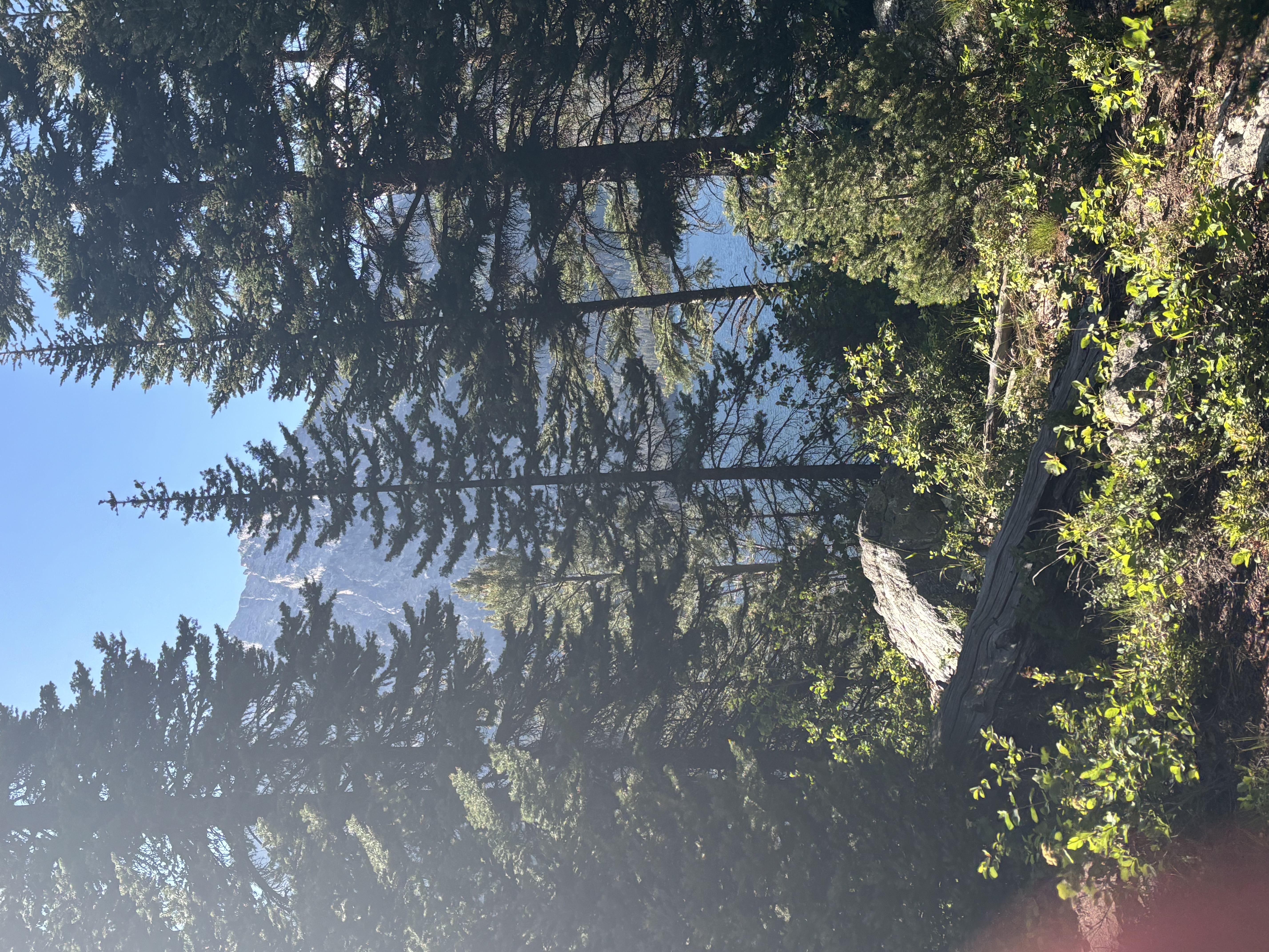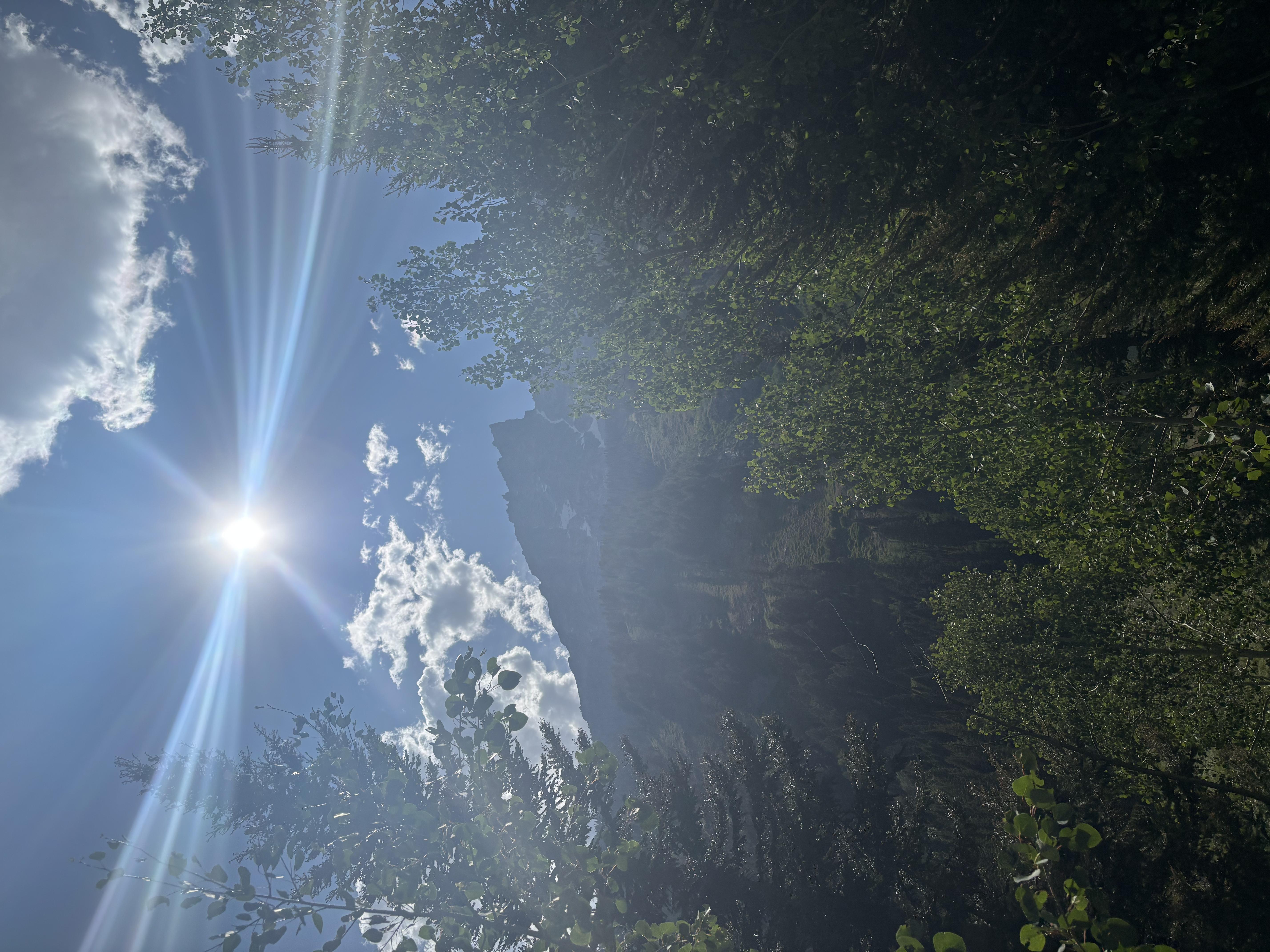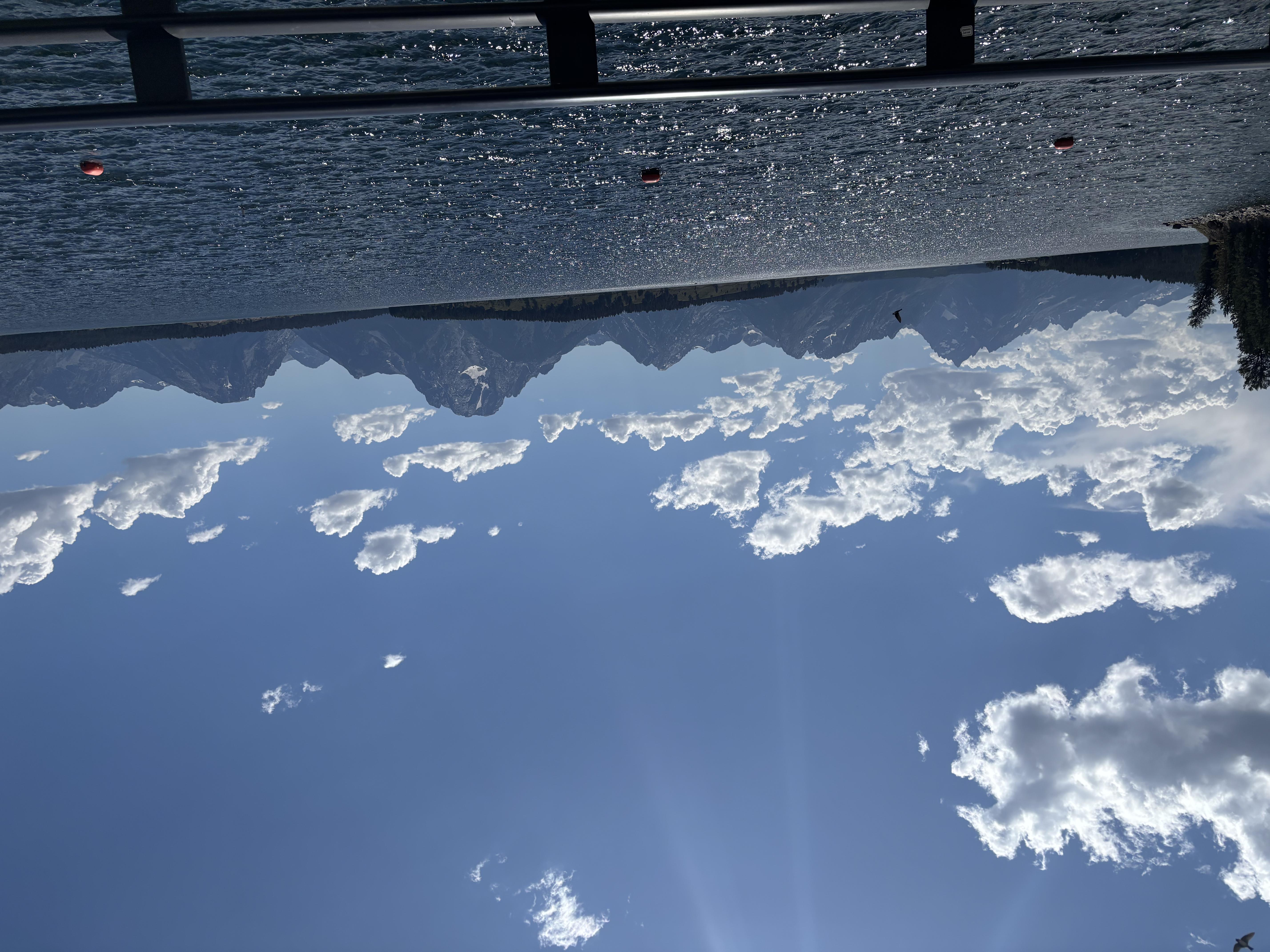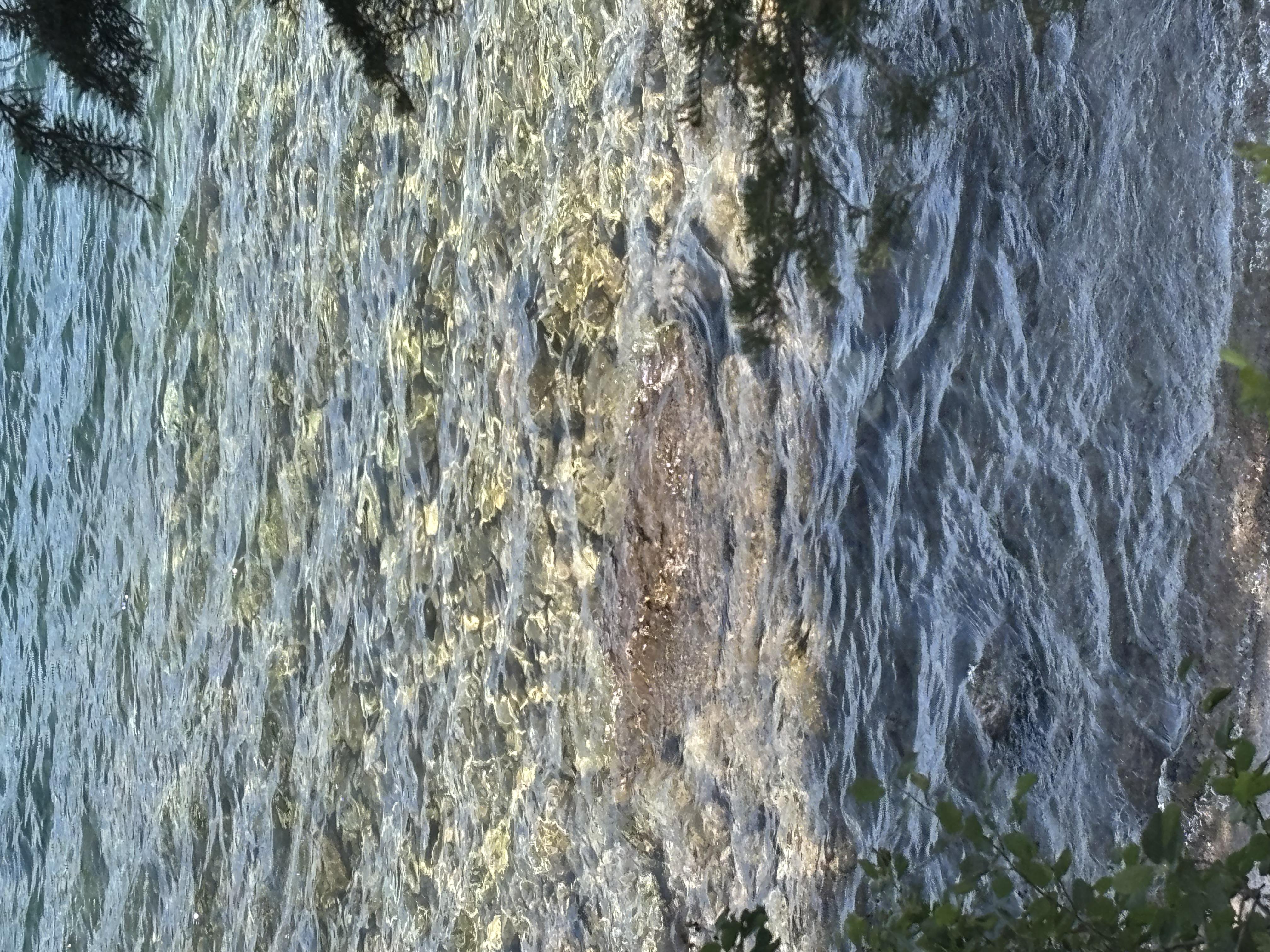 Despite it being a non-holiday week, and not the biggest attraction in the area (Yellowstone) the Park was packed! Mike and Bone landed the Land Cruiser in an overflow area of the Visitor Center, headed to the Lake to hike its fragrant pine trail! Walking by the lake, the Boys were simply gobsmacked on how crystal clear the lake was. It really was durn near perfect place and time for a hike! So off they went!