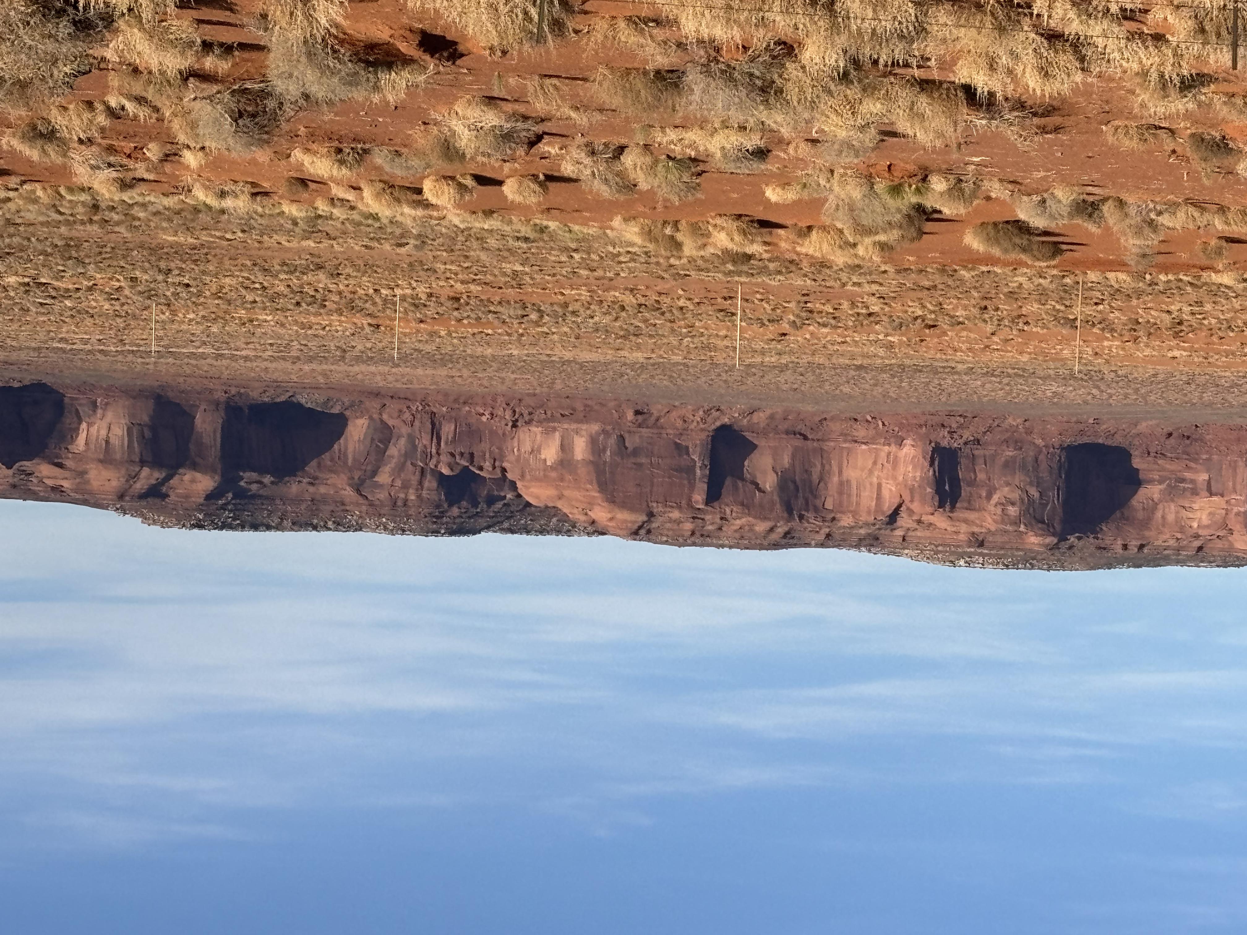 Trucking nicely along, soon Mike and Bone started to see the famous buttes of the valley. Once crossing into Arizona, the famous buttes started rising from the valley floor, which are visibly stratified, into three principal layers. The lowest layer is the Organ Rock Shale, the middle is de Chelly Sandstone, and the top layer is the Moenkopi Formation capped by something called Shinarump Conglomerate. All VERY geologically sounding, but cool to see!!