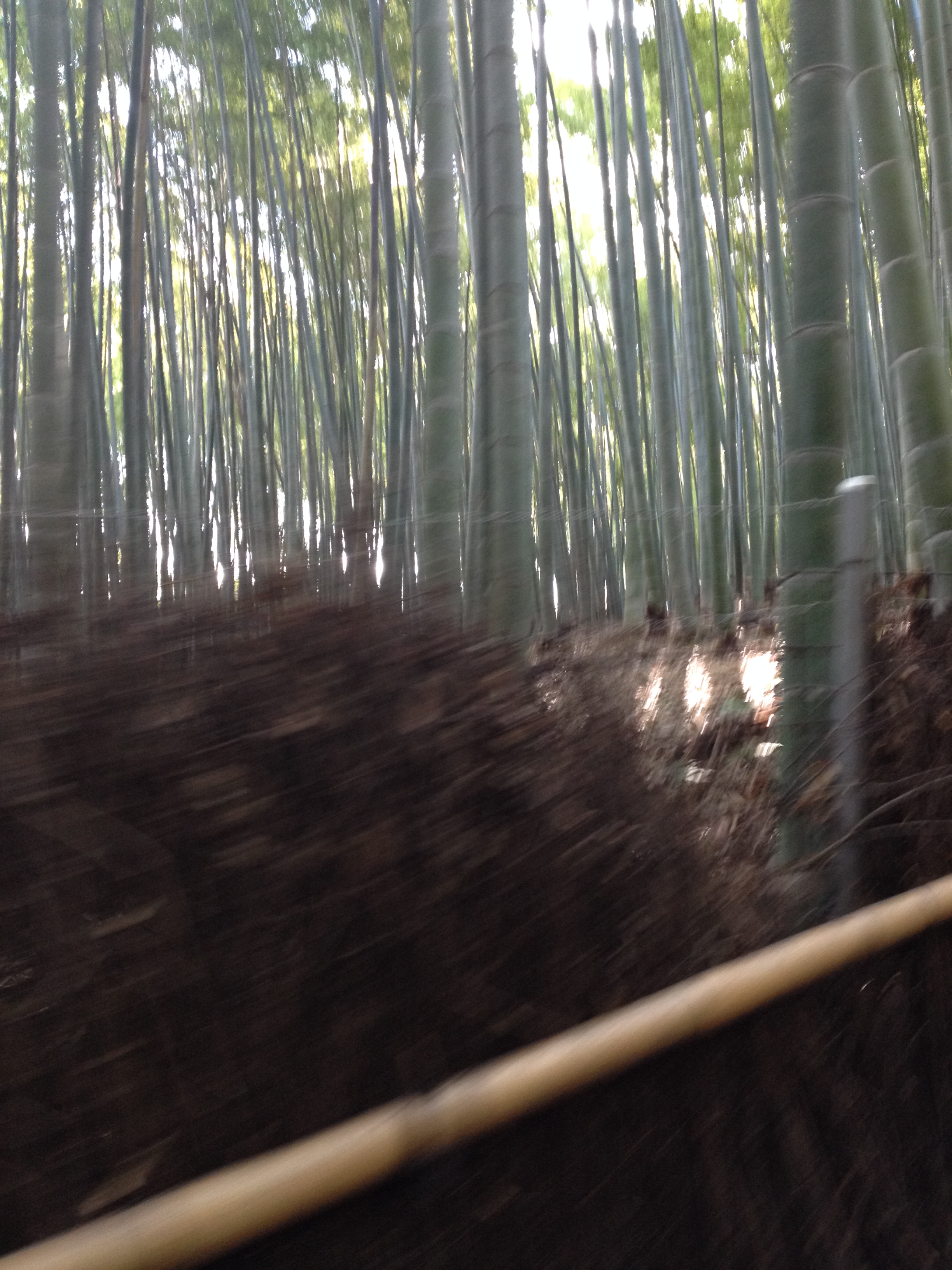 On the way to the next stop, Mr. Nakajima drove Mike and Bone through Kyoto's Sagano Bamboo Forest. The Bamboo Forest is just off the river on the outskirts of town, and have the towering green stalks of the famously versatile plant swaying in the wind, creaking eerily they collide and twist, with the leaves rustling.