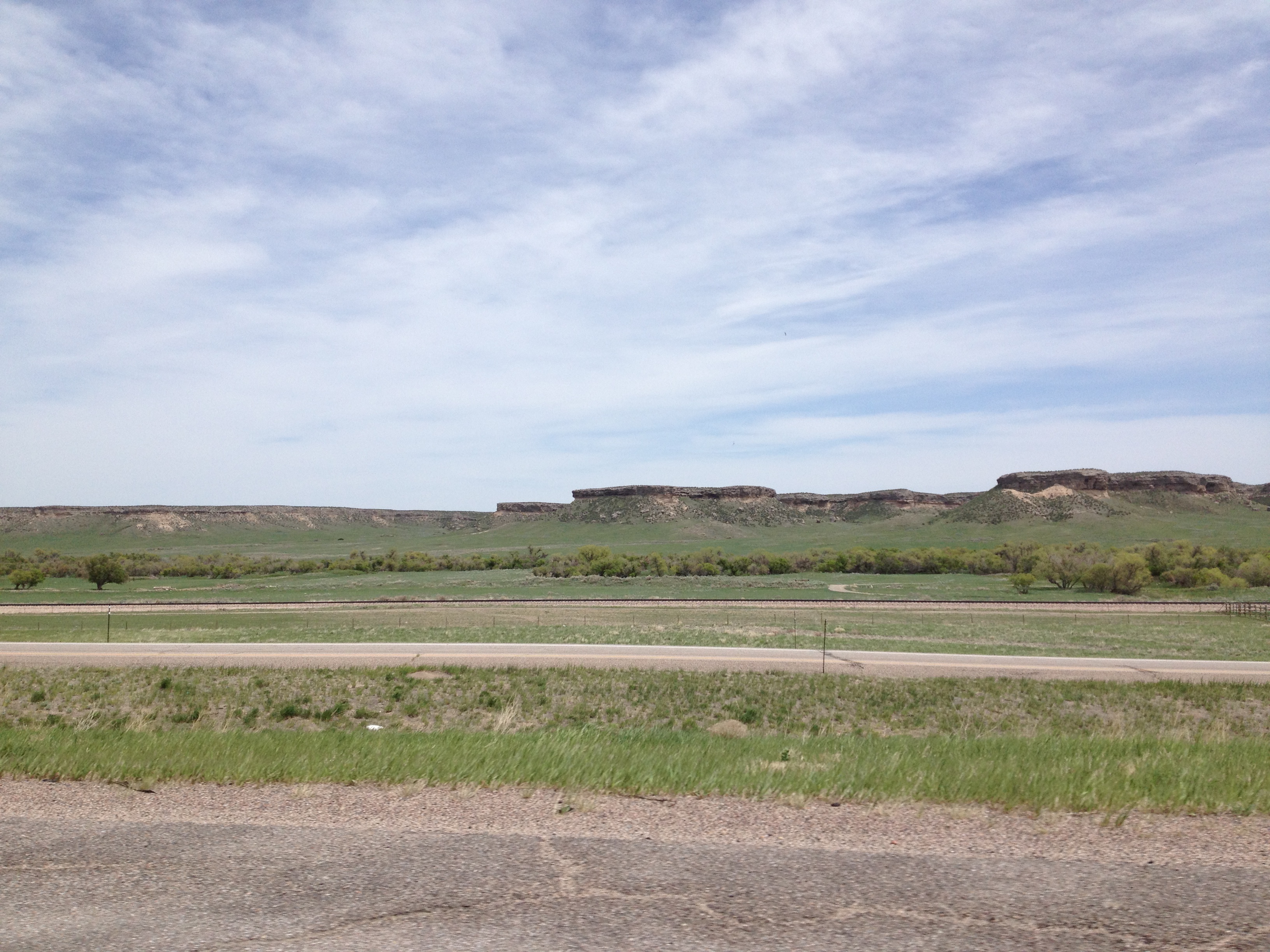 I-25 follows about 20 miles east of the eastern spine of the Rocky Mountains and has those "long plains" the Delaware's talked about. This is also called Big Sky Country which makes for the long dry, dusty, hot, flat ride which fortunately Mike and Bone used the icy cold micro-brews to while away the miles!