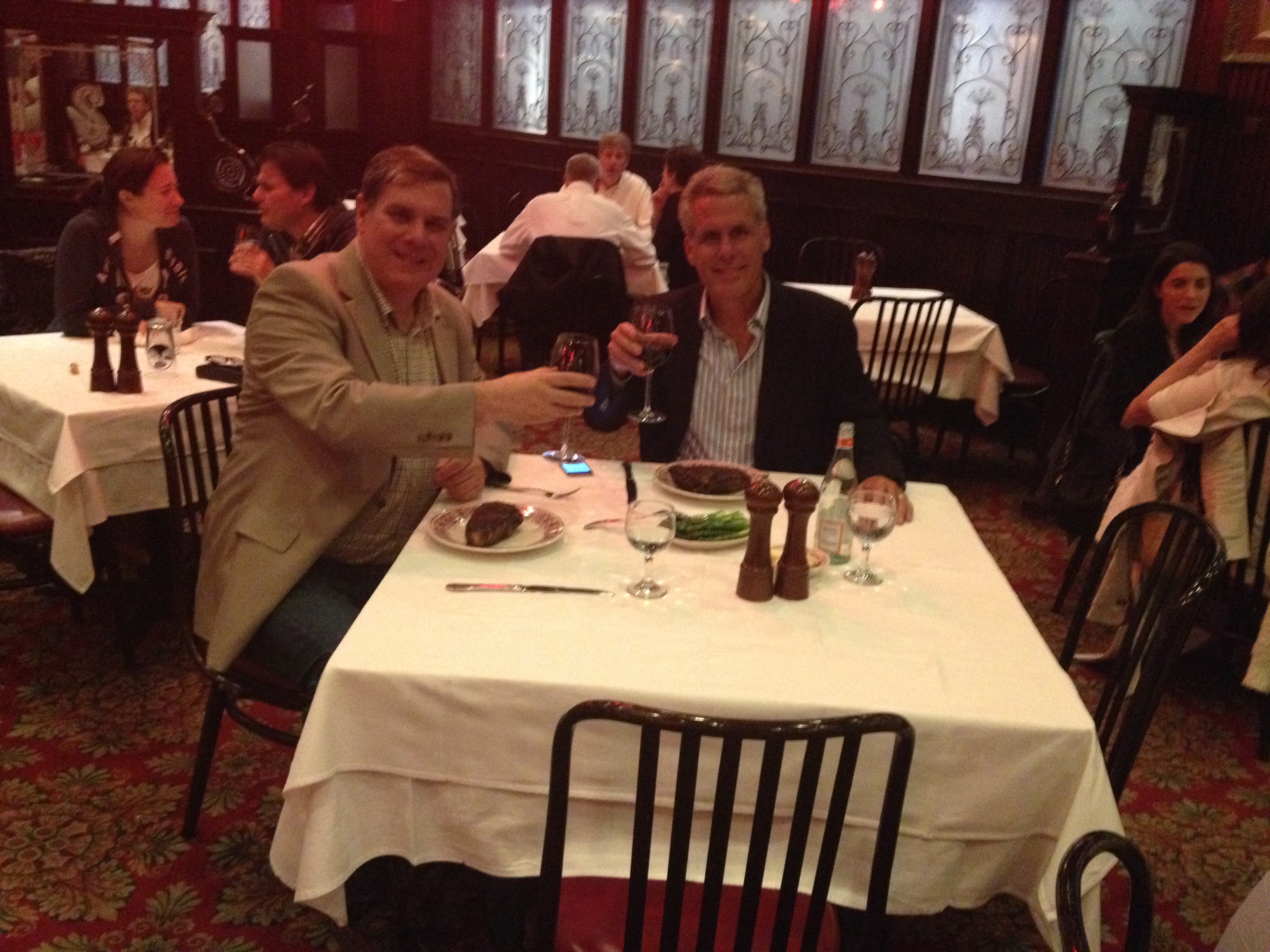 Perfect plan's that are foiled are typically due to extenuating circumstances or poor execution. Unfortunately in Bone's case it was both ! The traffic from Baltimore to Philly was bumper to bumper, then when Bone decided to use iPhone' Map App find the fastest route to La Guardia, it took him through the freaking heart of the city in back roads in Manhattan, the Bronx, and Harlem! Instead of being there are 5:30 he showed up at 7:30. Mike drowned his sorrows in a Airport Bar to the count of 7 beers with another passenger who was waiting for someone, so by the time Bone picked u Mike, he was already very happy! Being it was now pushing 9:00, Mike and Bone drove straight down from Queens into Brooklyn to the home of one of the (and arguably the best) Steak Houses in New York, Peter Lugers !