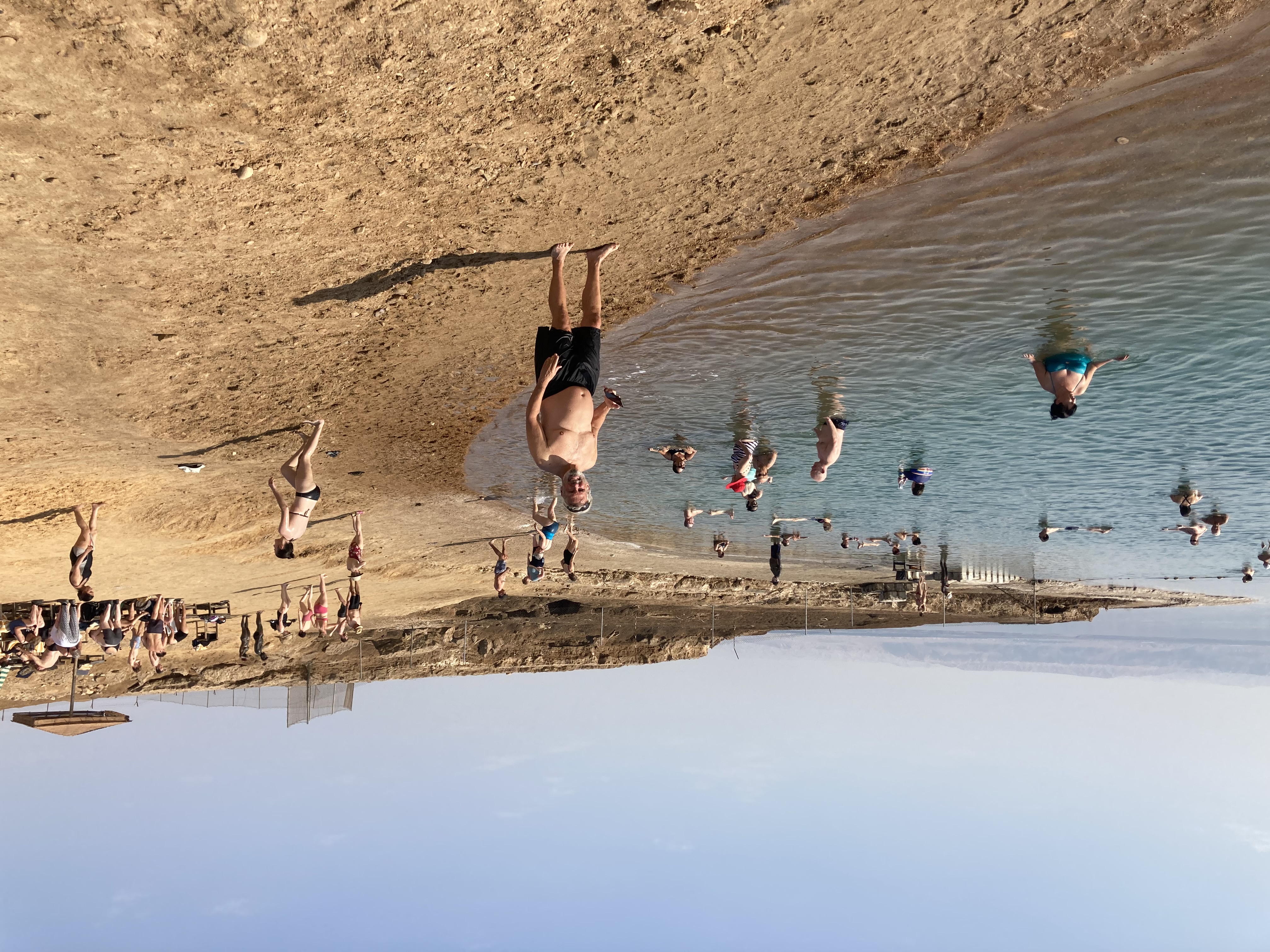 Jordan has a large Palestinian population from the Zionist takeover of what is now Israeli. Many of the Palestinians have been "pushed across the Jordan River into Jordan, and have been there for over 80 years. A "Palestinian Camp" is at the foot of the Citadel with close to a 100,000 people being supported by the UN and Jordan. While not a "camp" camp with tents, when the Road Scholar Bus drove through the Palestinian neighborhood, the extreme poverty was very apparent. With the sweaty visit of the Citadel complete, the Team, needed to "clean up with a dip into the Dead Sea!