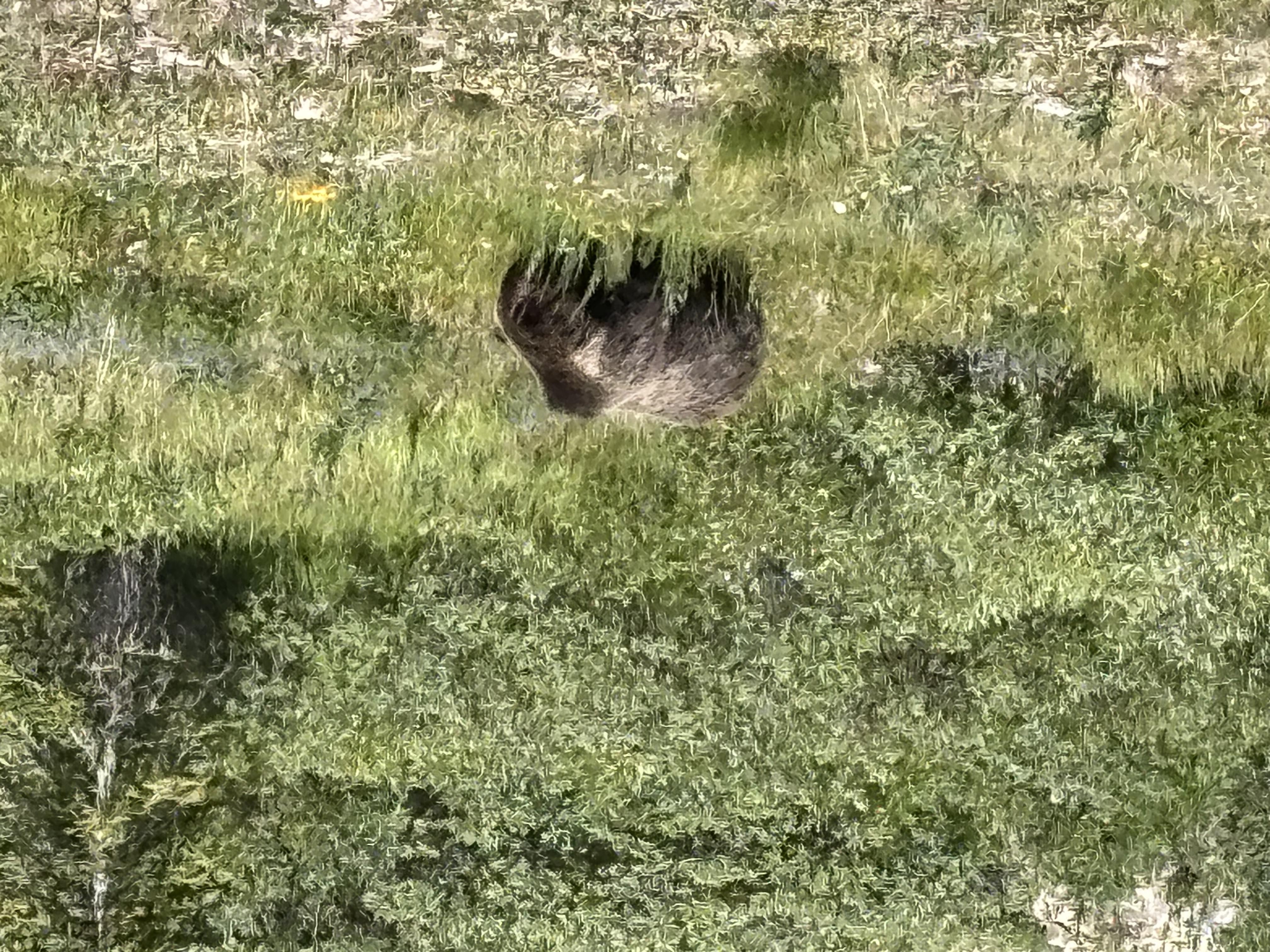 Slowly, the pine trees appears as the hills became higher, and soon the Boys were deep into the Rockies, and when they turned a corner the traffic slowed durn near to a stop! What was it?!? Could it be? Yep! it was bearly possible!! a Grizzly!