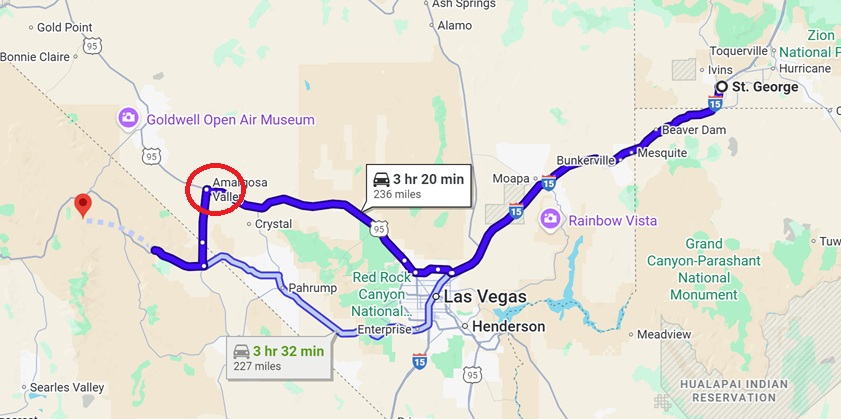 One of the objectives of the trip was to check out the extraordinary life and Hotel of the Amargosa Hotel in Death Valley, home of the NY Ballerina Marta Becket. Unfortunately Boney had another day of teaching the IBM European Team ahead of him. Since internet was highly unlikely, the Boys decided that Bone would stay in St George at a Holiday Inn Express, and Mike would push on to visit Marta!